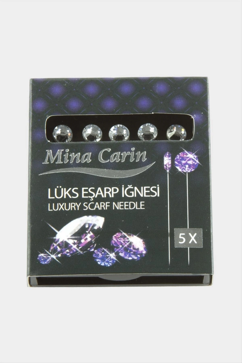 Eşarp İğnesi; Ürün malzemesi metal ve taştır. Ürün 1 kutu içersinde 5 adet tek taşlı eşarp iğnesi bulunmaktadır. Ürün boyu 4 cmdir.