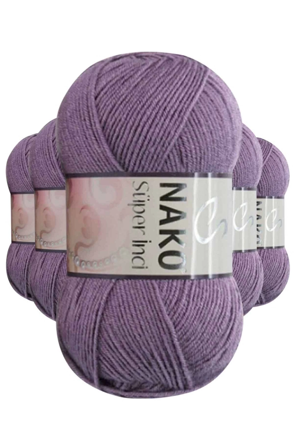 5 Adet Süper İnci El Örgü İpi 100 gr Açık Mürdüm 6684