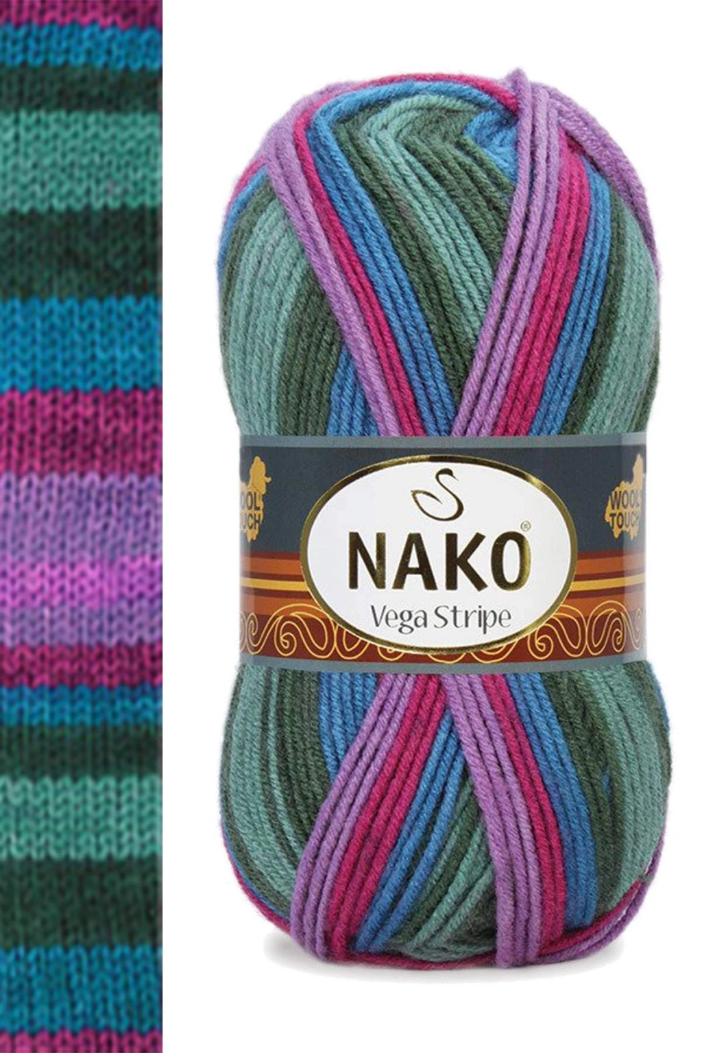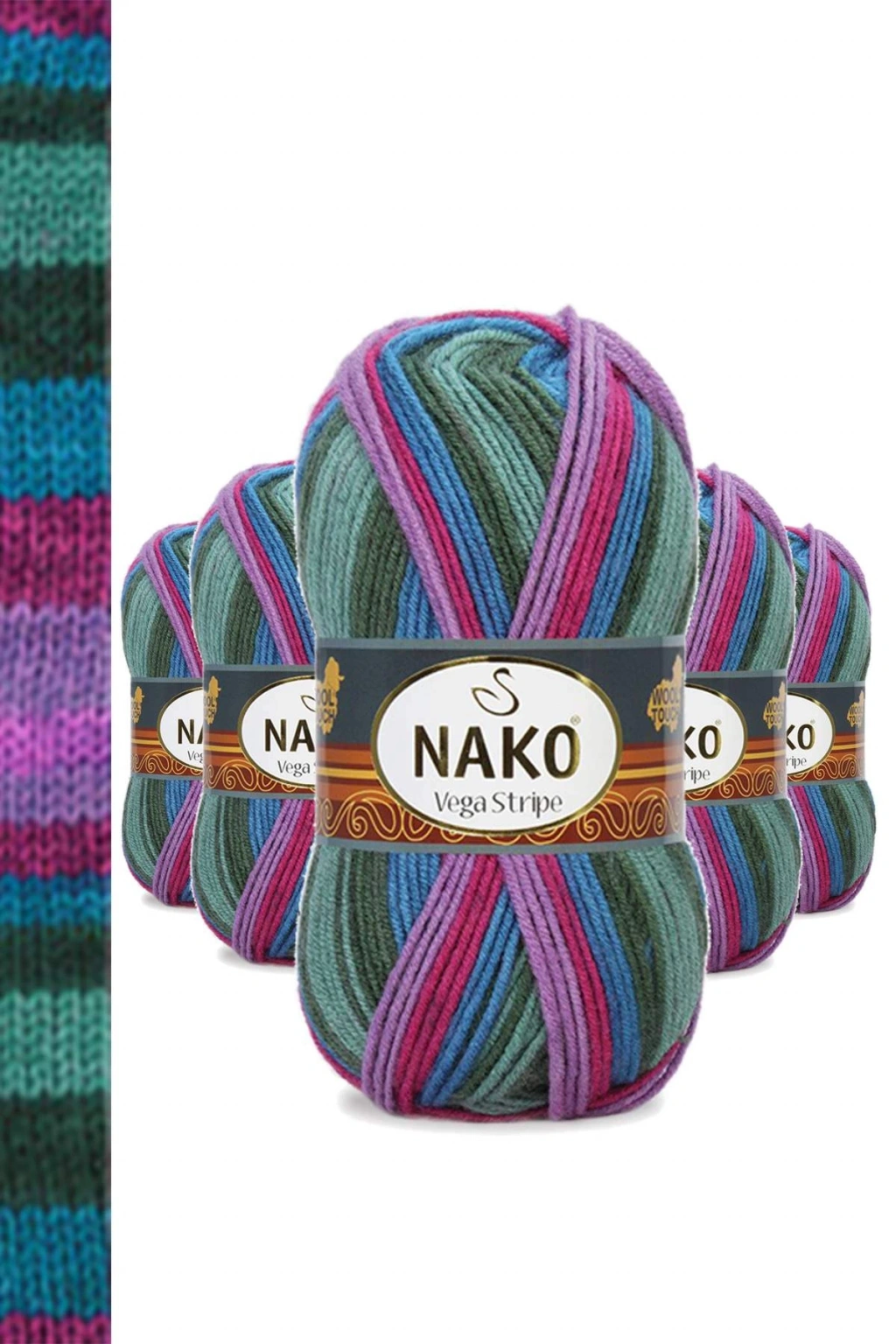 5 Adet Vega Stripe Premium Akrilik El Örgü İpi Yünü No: 82408
