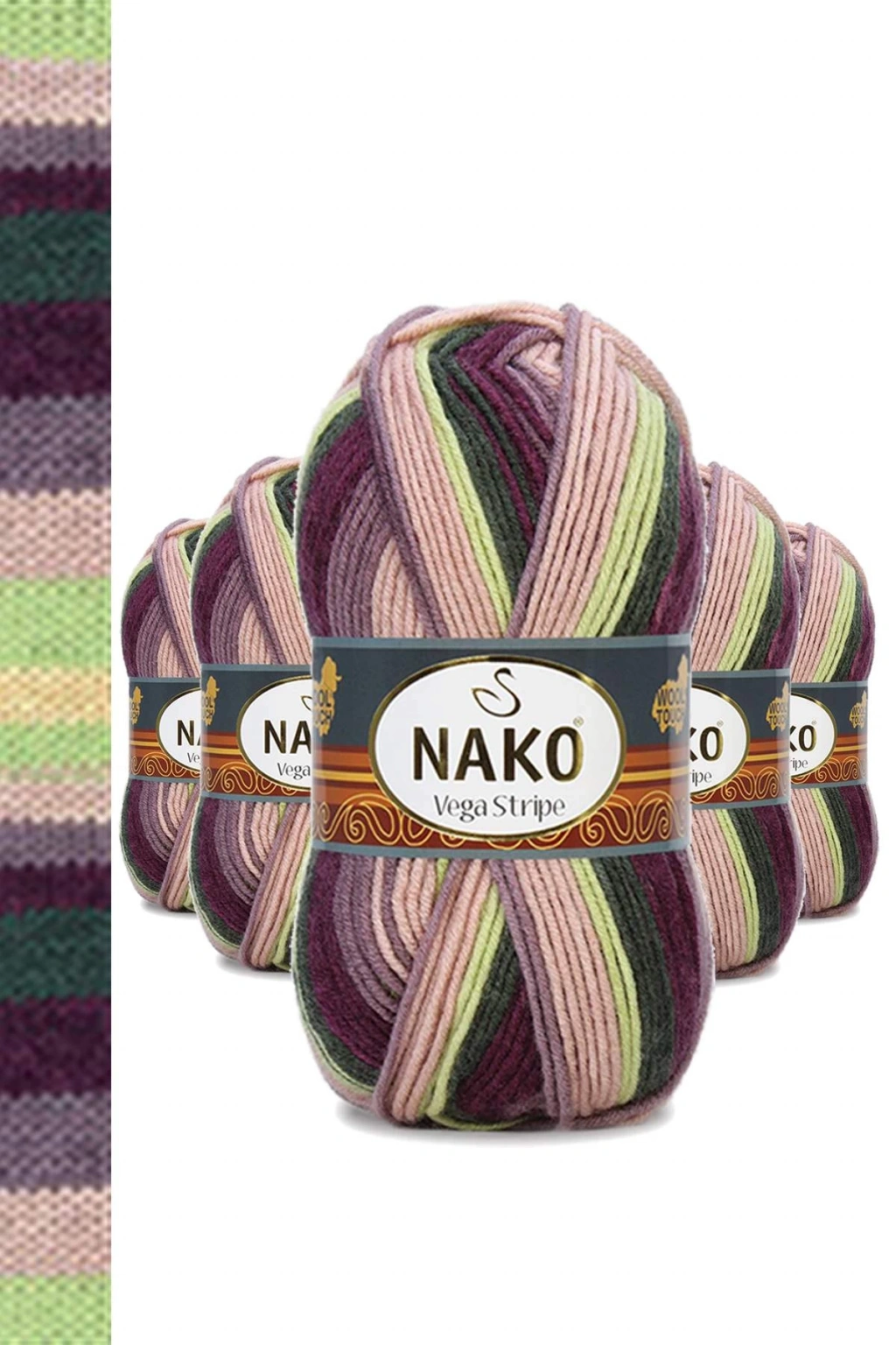 5 Adet Vega Stripe Premium Akrilik El Örgü İpi Yünü No: 82414