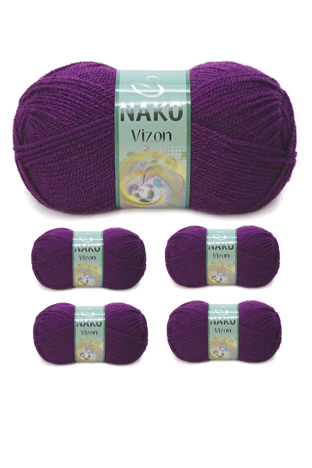 5 Adet Vizon Premium Akrilik El Örgü İpi Yünü Renk No:60 Mürdüm