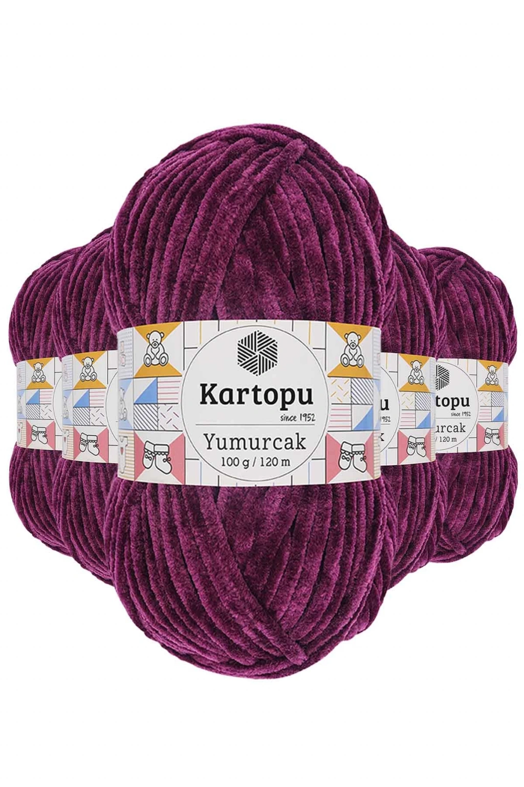 5 Adet Yumurcak Kadife El Örgü İpi Mürdüm K726