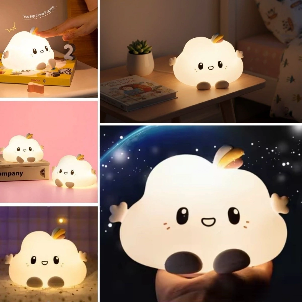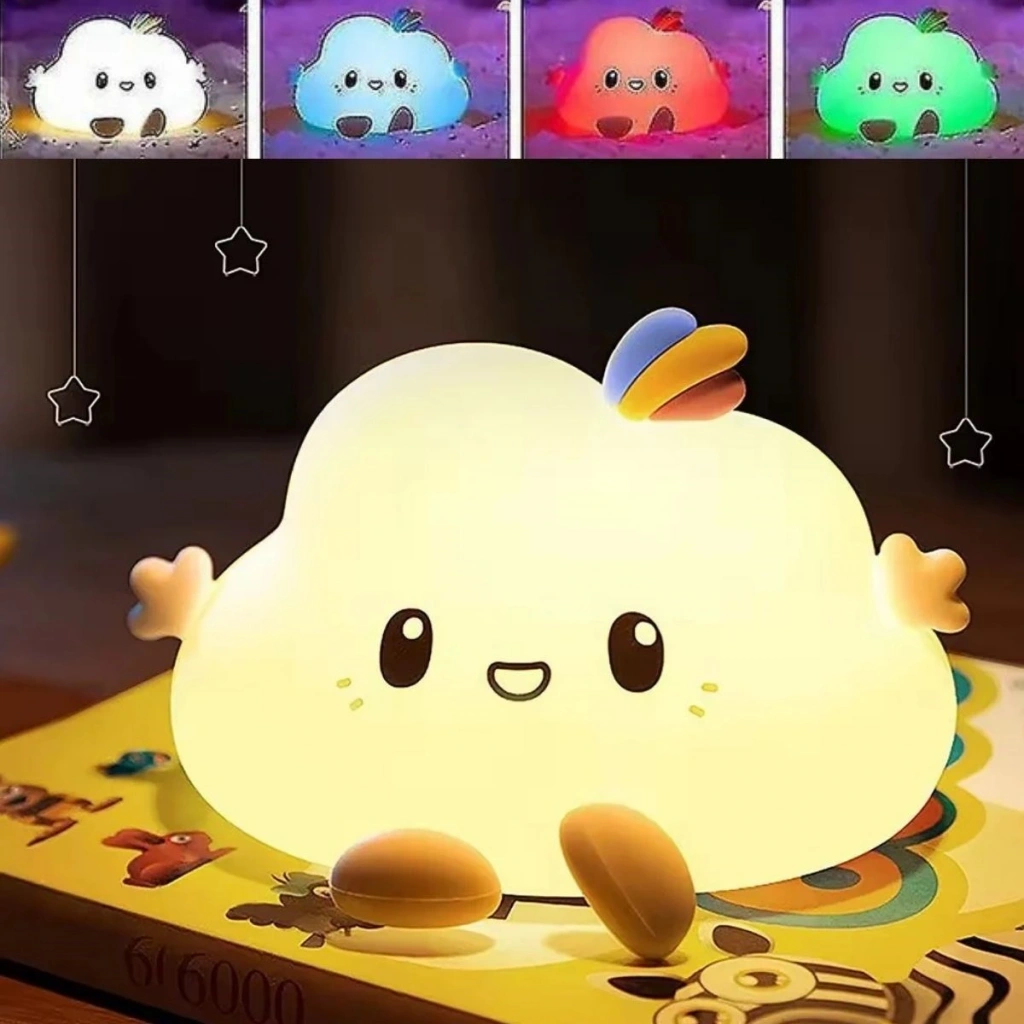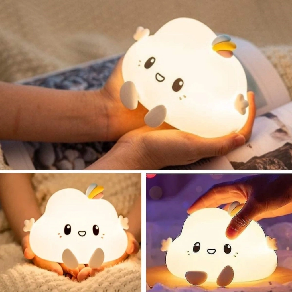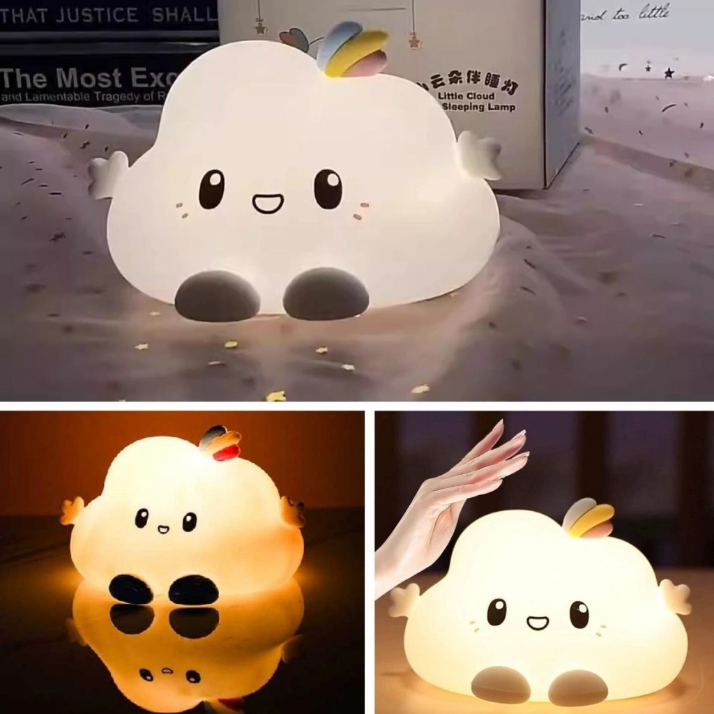 Bulut Figürlü Pofuduk LED Gece Lambası, sevimli bulut tasarımı ve yumuşak dokulu gövdesiyle yaşam alanlarınıza huzurlu ve sıcak bir atmosfer kazandırır. Göz yormayan LED ışığı sayesinde çocuk odaları, bebek odaları, yatak odaları ve masaüstleri için ideal bir gece aydınlatması sunar.