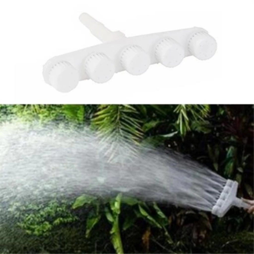 5 KAFALI SULAMA BAŞLIĞI YÜKSEK BASINÇLI HORTUM APARATIÜrün Özellikleri5 kafalı sulama başlığı yüksek basınçlı hortum atı, bahçe sulama işlemlerini hızlı, zahmetsiz ve verimli hale getirmek için tasarlanmıştır. Beş adet sprey çıkışına sahip yapısı sayesinde çiçek, sebze ve meyveleri tek tek sulama ihtiyacını ortadan kaldırarak geniş alanların kısa sürede sulanmasını sağlar. Yüksek basınçlı sprey sistemi, suyu eşit ve dengeli şekilde dağıtarak bitkilere zarar vermeden etkili sulama sunar. Geniş akış kapasitesi, sulama süresini kısaltarak zamandan tasarruf edilmesine yardımcı olur. Peyzaj alanları, tarım ve çim sahaları, hobi bahçeleri, parklar ve meyve sebze seralarında güvenle kullanılabilir. ABS malzemeden üretilmiş dayanıklı gövdesi, uzun süreli kullanımda formunu korur ve dış etkenlere karşı dirençlidir. Hortuma kolayca takılabilen yapısı sayesinde pratik kullanım sunar ve su miktarı ile sprey yoğunluğu ihtiyaca göre ayarlanabilir.Paket İçeriği1 adet 5 kafalı yüksek basınçlı sulama hortum atı