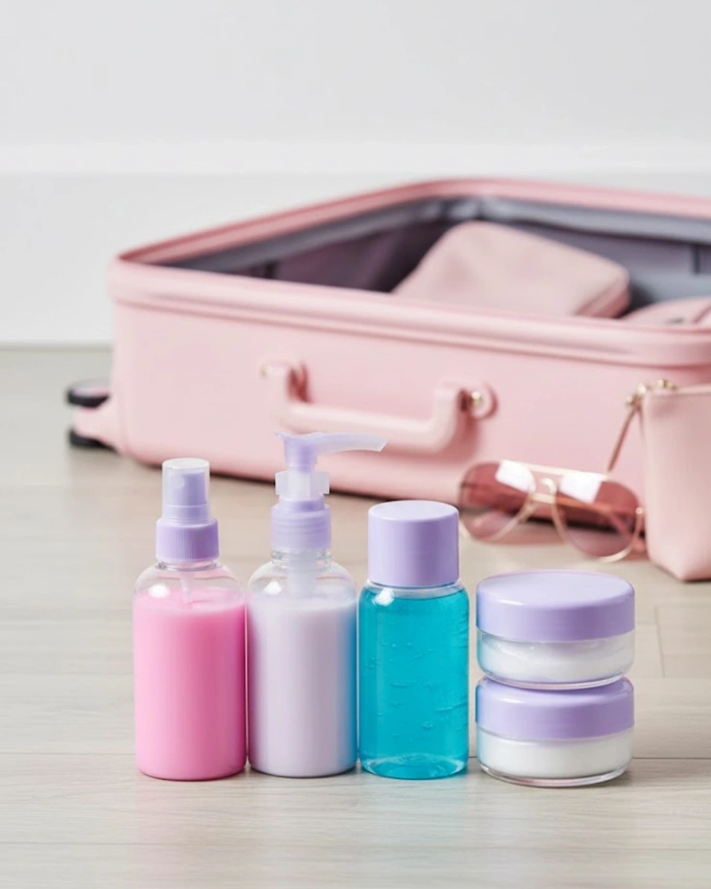 5 parça şeffaf seyahat kozmetik seti, minimal tasarımı ve pratik kullanım avantajı ile öne çıkar. İçeriğinde farklı formda şişe ve krem kapları bulunur.Sızdırmaz sistem sayesinde güvenli taşıma sağlar. Kompakt boyutu sayesinde yer kaplamaz.Spor, tatil ve günlük kullanım için idealdir.