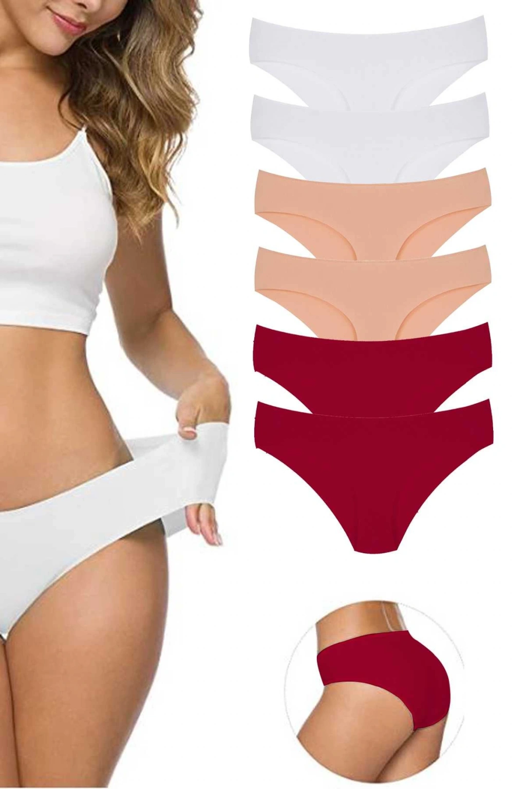 6 Adet Kadın Dikişsiz Lazer Kesim Esnek İz yapmayan Külot S10