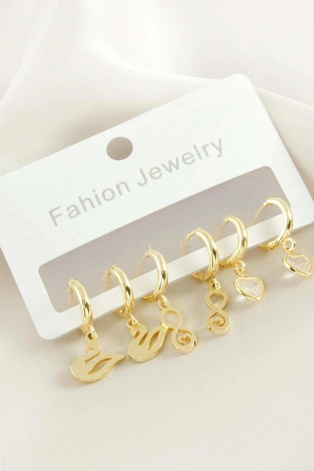6 Adet Kuğu Sonzuluk Kalp Taşlı Halka Küpe
