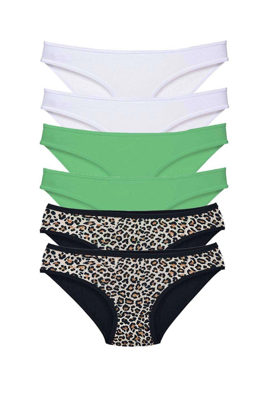 6 Adet Likralı Kadın Slip Külot Leopar Beyaz Yeşil