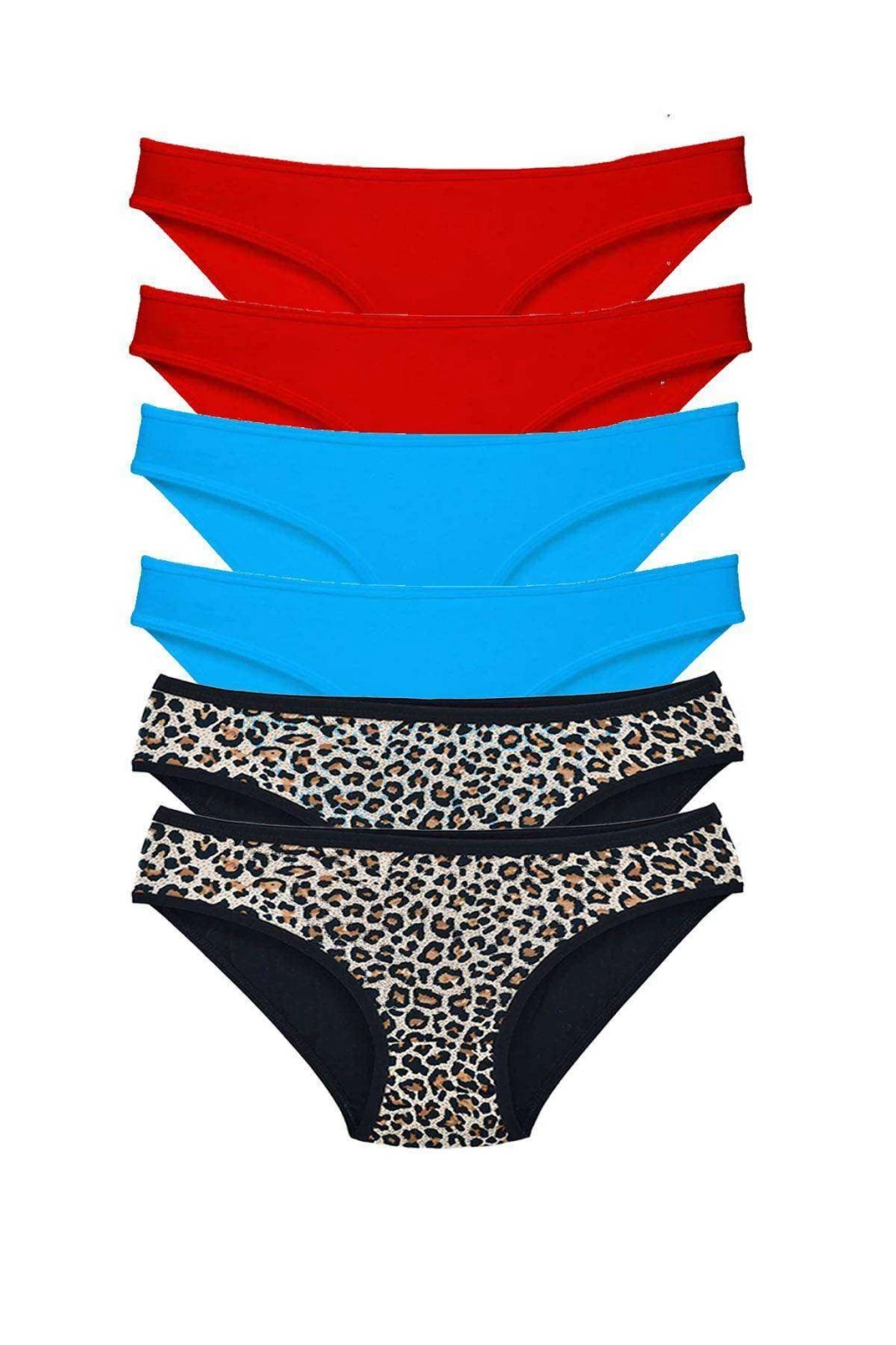 6 Adet Likralı Kadın Slip Külot Leopar Kırmızı Mavi