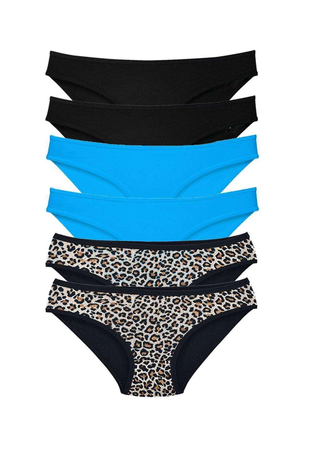 6 Adet Likralı Kadın Slip Külot Leopar Siyah Mavi