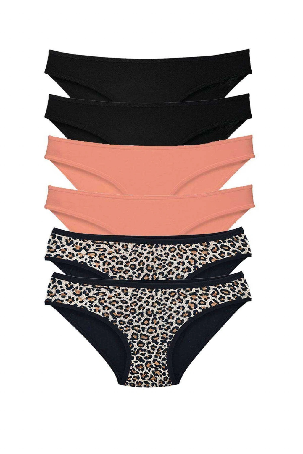 6 Adet Likralı Kadın Slip Külot Leopar Siyah Pudra