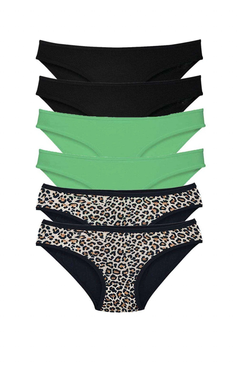 6 Adet Likralı Kadın Slip Külot Leopar Siyah Yeşil