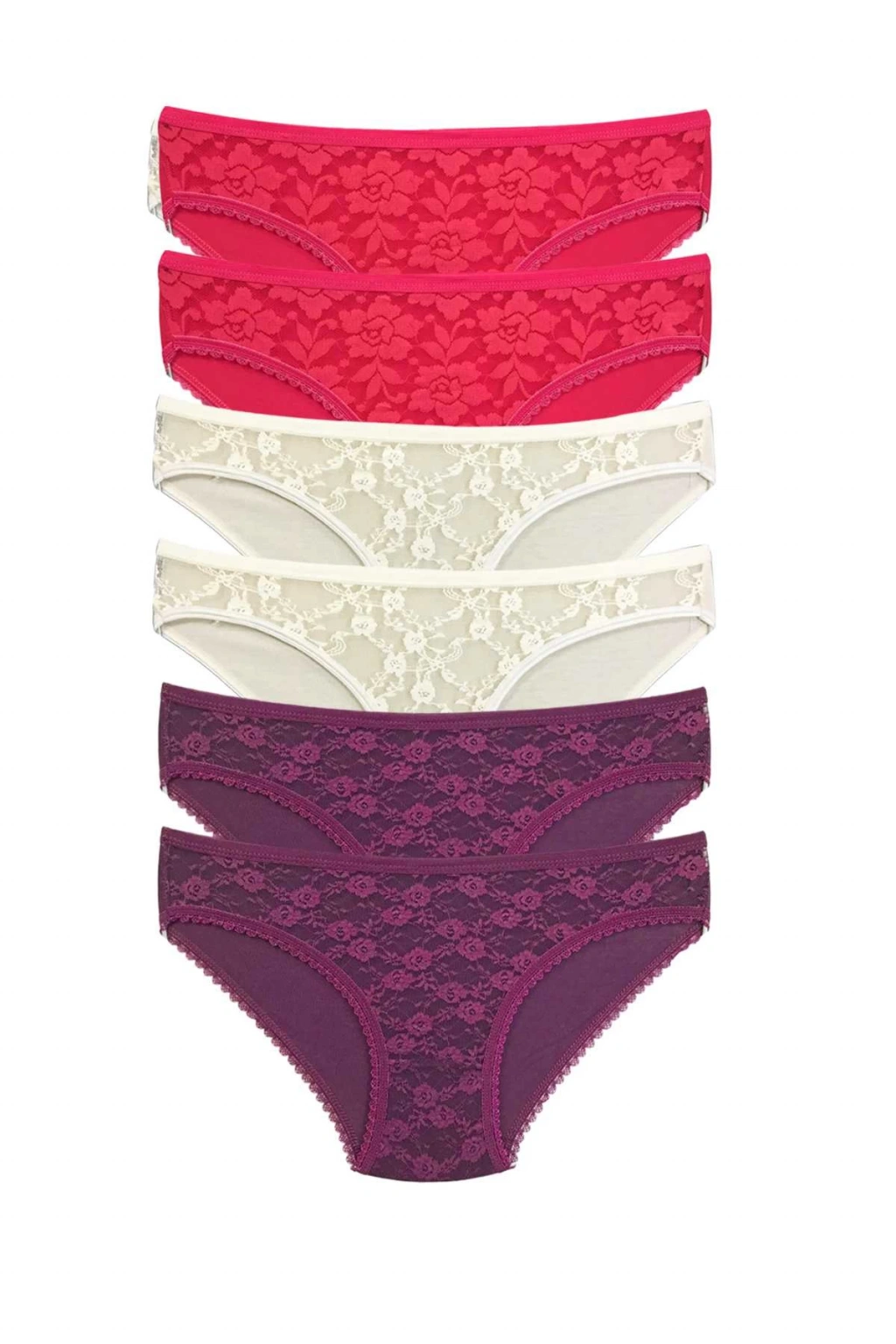 6 Adet Önü Dantelli Transparan Kadın Slip Külot S130