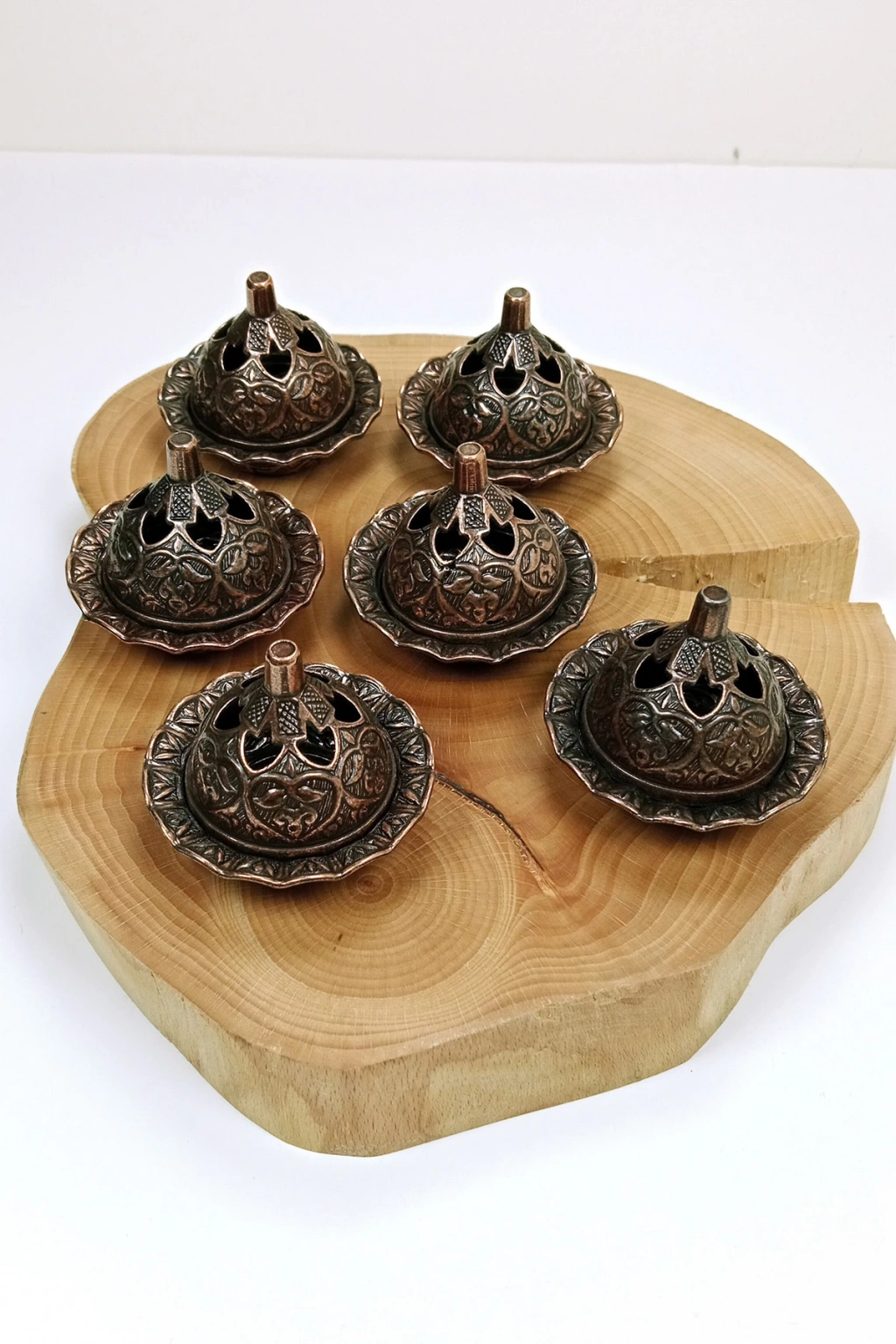 6 Lı Mini Eskitme Osmanlı Temalı Koyu Renk Lokumluk Sunum