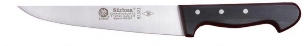 Sürbısa 61031 - Sürmene Kasap Kemik Sıyırma Bıçağı 18,5 cm, kemik sıyırma ve et hazırlama işlemlerinde yüksek performans sağlayan, dayanıklı ve etkili bir bıçaktır. Özellikle et ve kemiklerin hassas bir şekilde işlenmesi için idealdir.