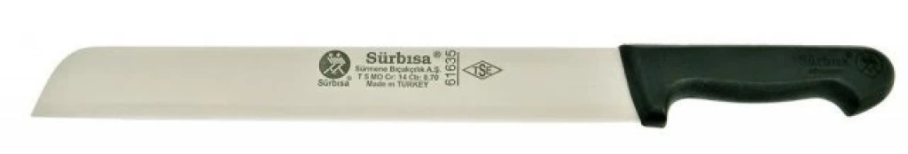 Sürbısa 61635, 35 cm uzunluğunda özel bir bıçak olup, özellikle kaşar peyniri ve kavurma gibi malzemelerin kesimi için tasarlanmıştır. Sürmene'nin geleneksel bıçak yapım teknikleriyle üretilmiş bu bıçak, hem sert hem de yumuşak malzemelerin hassas ve etkili bir şekilde kesilmesini sağlar. Uzun ve dayanıklı yapısı, mutfakta profesyonel ve ev kullanımı için mükemmel bir seçimdir.