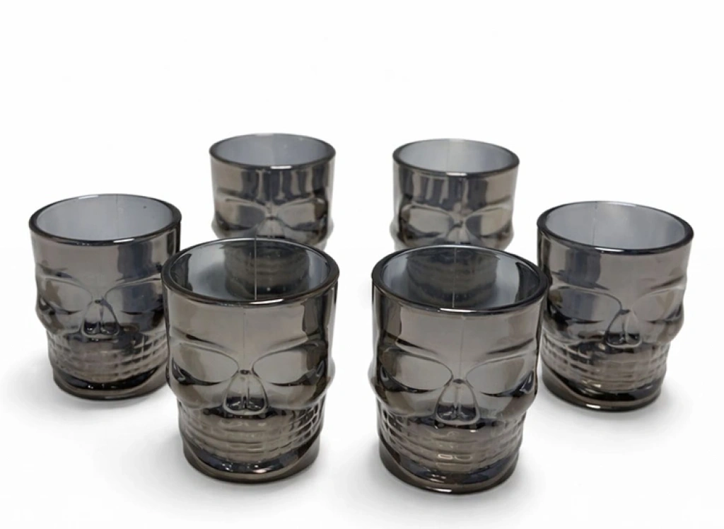 6'LI KURUKAFA SİYAH CAM SHOT BARDAĞI SETİ Ürün ÖzellikleriSunumlarınıza karanlık bir zarafet ve iddialı bir stil katın! 6'lı Kurukafa Siyah Cam Shot Bardağı Seti, dumanlı siyah cam tonu ve detaylı kurukafa tasarımıyla masalarınızda karizmatik bir hava estirir. 6x5 cm boyutlarındaki kompakt yapısı, shot sunumları için ideal ölçülerdedir. Yüksek kaliteli füme siyah camdan üretilen bu set, ışık oyunlarıyla kurukafa detaylarını ön plana çıkararak büyüleyici bir görsellik sunar. Ergonomik formuna eklenen detaylı kabartmalar, hem güvenli bir tutuş sağlar hem de içecek sunumlarınıza derinlik katar. Ev barınızın en dikkat çekici parçası olmaya aday bu set, özellikle partiler, özel davetler ve marjinal tasarımlardan hoşlanan sevdikleriniz için kusursuz bir hediye alternatifidir.Ürün Teknik ÖzellikleriÖzellikAçıklamaSet İçeriği6 Adet Shot BardağıBardak Boyutu6 cm (Yükseklik) x 5 cm (Ağız Çapı)MalzemeYüksek Kaliteli Füme (Siyah) CamTasarım3D Detaylı Kurukafa FormuKullanım AlanıShot Sunumları, Espresso, Dekoratif KullanımTemizlikElde ve Makinede Yıkamaya UygundurPaket İçeriği6 Adet Siyah Cam Kurukafa Shot Bardağı.