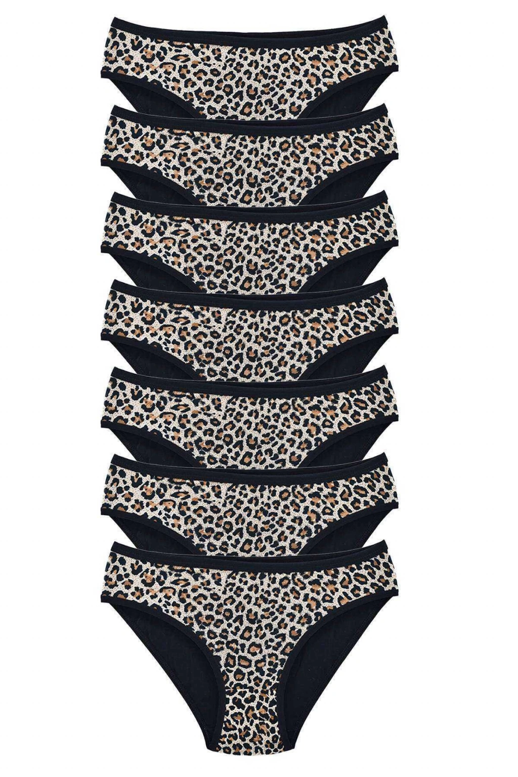 7 Adet Leopar Desenli Likralı Yumuşak Dokulu Kadın Slip Külot
