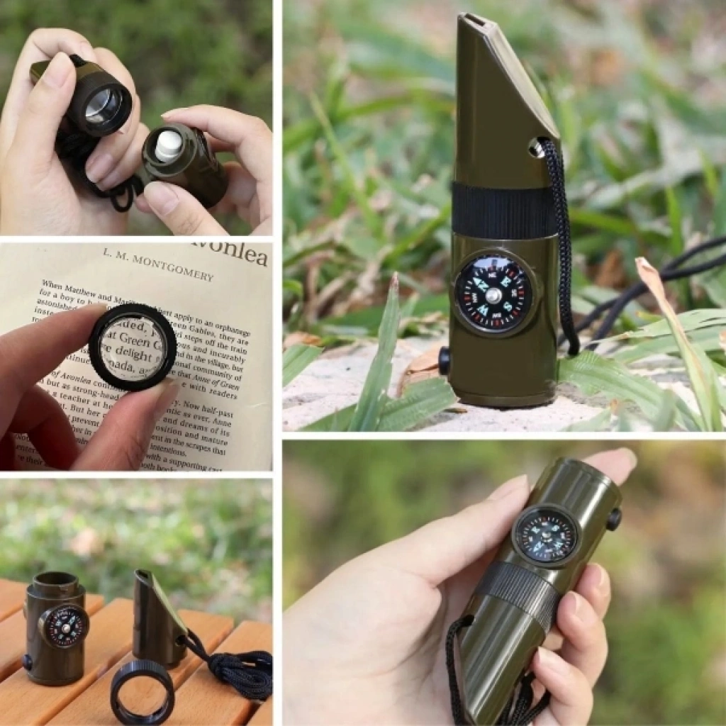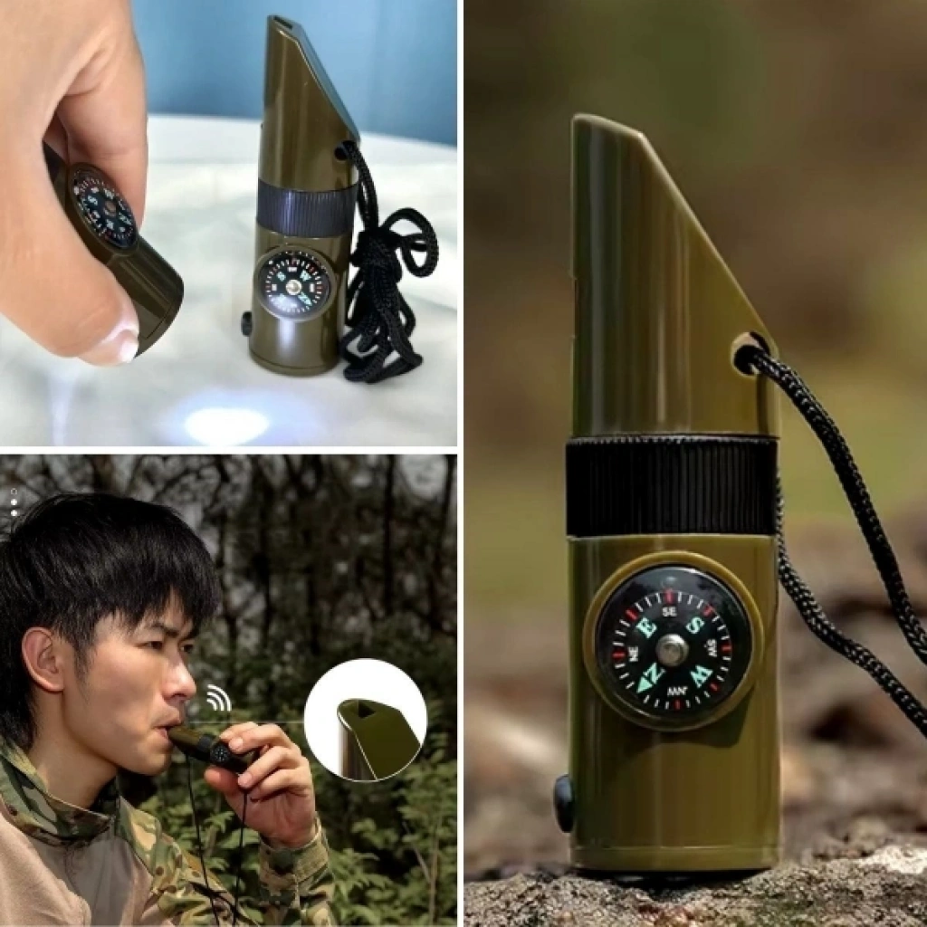 7’Sİ 1 ARADA ACİL DURUM DÜDÜĞÜÜrün Özellikleri7’si 1 arada acil durum düdüğü, doğa yürüyüşleri, kamp, avcılık ve acil durum senaryoları için çok fonksiyonlu ve pratik bir yardımcı olarak tasarlanmıştır. Entegre el feneri düşük ışık koşullarında ve gece yolculuklarında aydınlatma sağlarken, dahili termometre bulunduğunuz ortamın sıcaklığını anlık olarak takip etmenize yardımcı olur. Hassas pusulası yön bulmayı kolaylaştırarak kaybolma riskini azaltır. Büyüteç özelliği küçük detayları net şekilde görmenizi sağlarken, gövde içinde yer alan depolama bölmesi kibrit, iğne veya küçük acil durum malzemeleri için saklama alanı sunar. Güçlü düdük bölümü acil durumlarda yüksek sesle sinyal vererek çevredeki dikkatleri üzerinize çeker. Kompakt, hafif ve dayanıklı yapısı sayesinde çantada, boyunda veya cebinizde rahatlıkla taşınabilir. Kamp, trekking, dağcılık, izcilik ve günlük outdoor aktivitelerinde güvenlik ve pratikliği bir arada sunar.Paket İçeriği1 adet 7’si 1 arada acil durum düdüğü