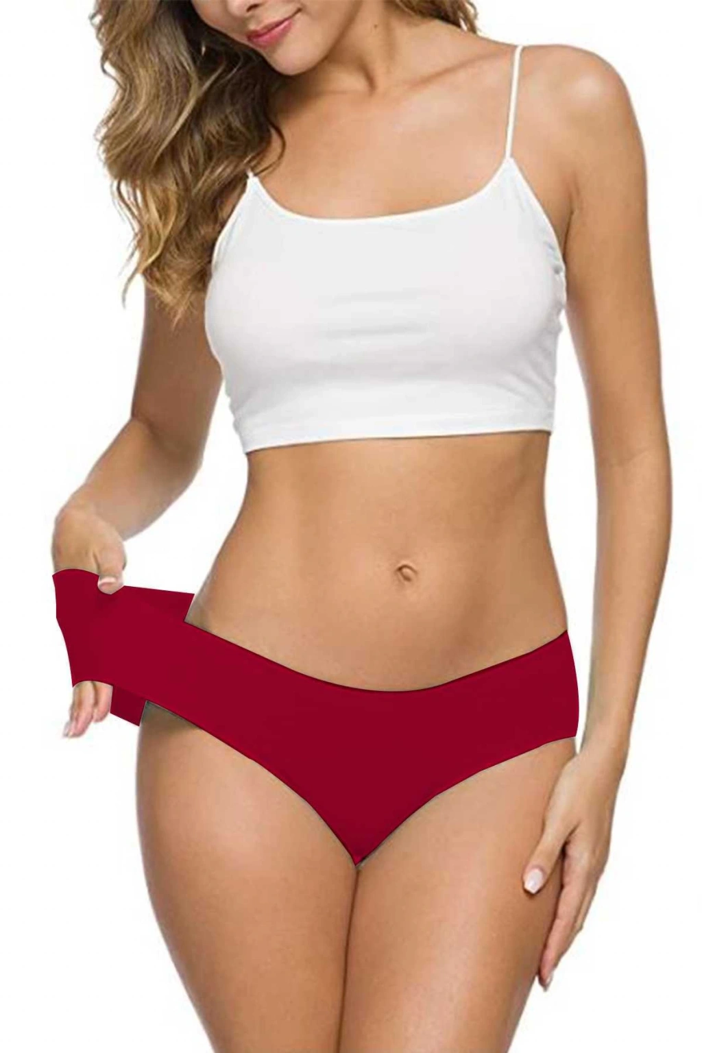 8 Adet Kadın Dikişsiz Lazer Kesim Esnek İz yapmayan Külot Bordo