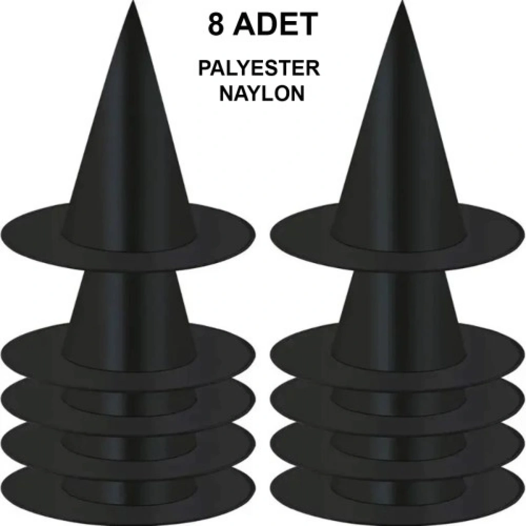8 Adet Siyah Cadı Şapkası Seti | Yetişkin & Çocuk Kostüm AksesuarıGizemli ve eğlenceli bir cadılar meclisi kurmaya hazır mısınız? 8’li Siyah Cadı Şapkası Seti, kalabalık gruplar, okul etkinlikleri veya temalı partiler için en pratik ve ikonik çözümü sunar. Klasik sivri formu ve zamansız siyah rengiyle, hem minik cadılar hem de yetişkin büyücüler için vazgeçilmez bir kostüm parçasıdır.Öne Çıkan ÖzelliklerEkonomik 8’li Paket: Arkadaş grupları, aile kombinleri veya parti hediyeliği (party favors) olarak dağıtmak için ideal bir settir.Hafif ve Konforlu Yapı: İnce ve esnek kumaş dokusu sayesinde başınızda ağırlık yapmaz; partinin başından sonuna kadar rahatça takılabilir.Katlanabilir Tasarım: Kolayca katlanıp saklanabilir yapısı sayesinde yer kaplamaz, bir sonraki etkinlik için formunu kaybetmeden muhafaza edilebilir.Klasik Sivri Form: Cadı modasının imza görünümü olan dik ve sivri uçlu tasarım, anında karakter dönüşümü sağlar.Unisex ve Her Yaşa Uygun: Esnek yapısı ve standart ölçüleri sayesinde hem çocukların hem de yetişkinlerin kullanımına uygundur.Kullanım AlanlarıCadılar Bayramı (Halloween) Partileri: Grubunuzla birlikte "Modern Cadılar" konsepti yaratmak için.Okul Müsameresi ve Gösteriler: Tiyatro oyunlarında veya masal kahramanı canlandırmalarında tek tip ve şık bir görünüm sağlar.Doğum Günü ve Konsept Kutlamalar: "Büyücülük Okulu" veya "Korku" temalı doğum günlerinde davetlilere dağıtılacak en eğlenceli aksesuar.Fotoğraf Çekimleri (Photobooth): Arkadaşlarınızla çekineceğiniz anı fotoğraflarına gizemli bir hava katmak adına.