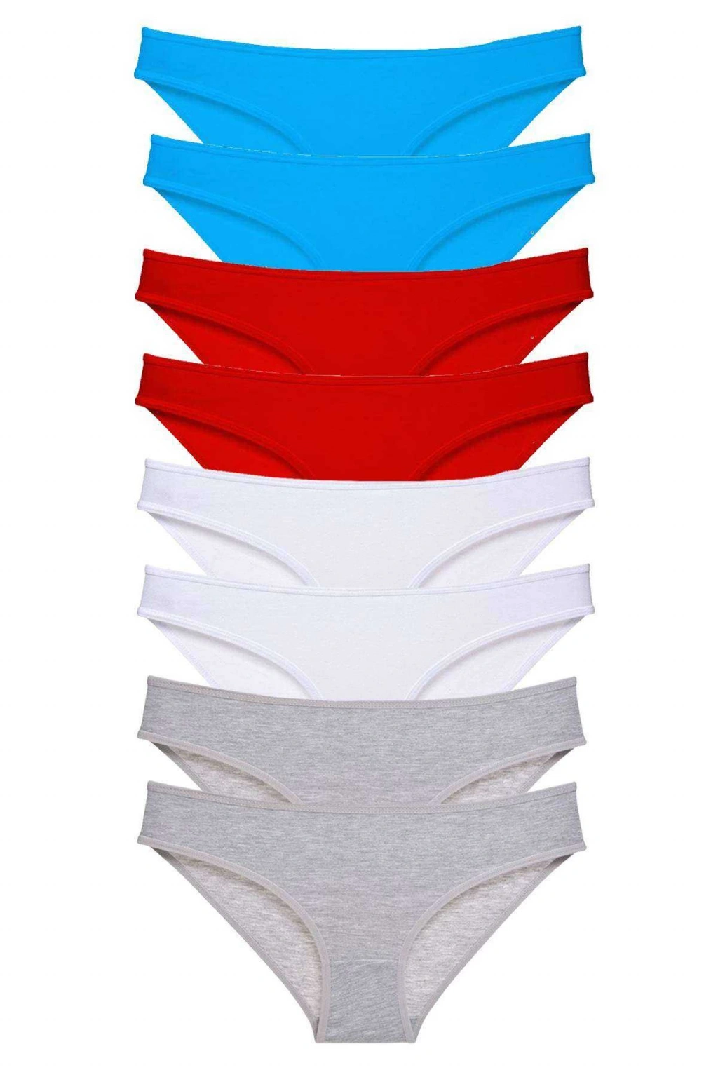 8 adet Süper Eko Set Likralı Kadın Slip Külot Kırmızı Gri Beyaz Mavi