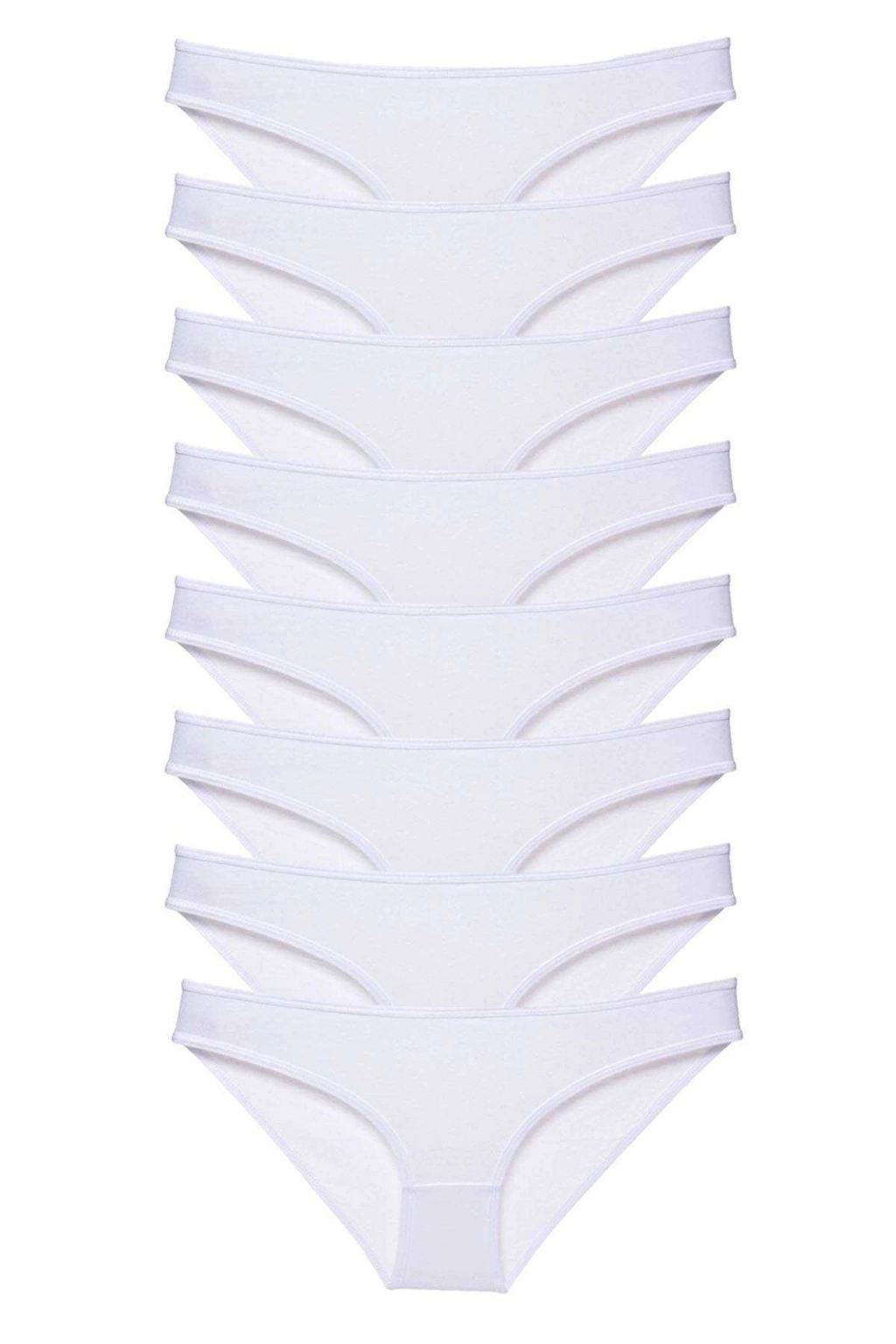 8 adet Süper Eko Set Likralı Kadın Slip Külot Beyaz