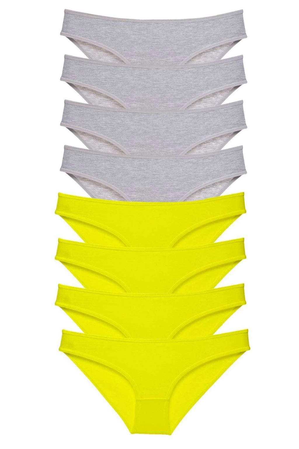 8 adet Süper Eko Set Likralı Kadın Slip Külot Sarı Gri