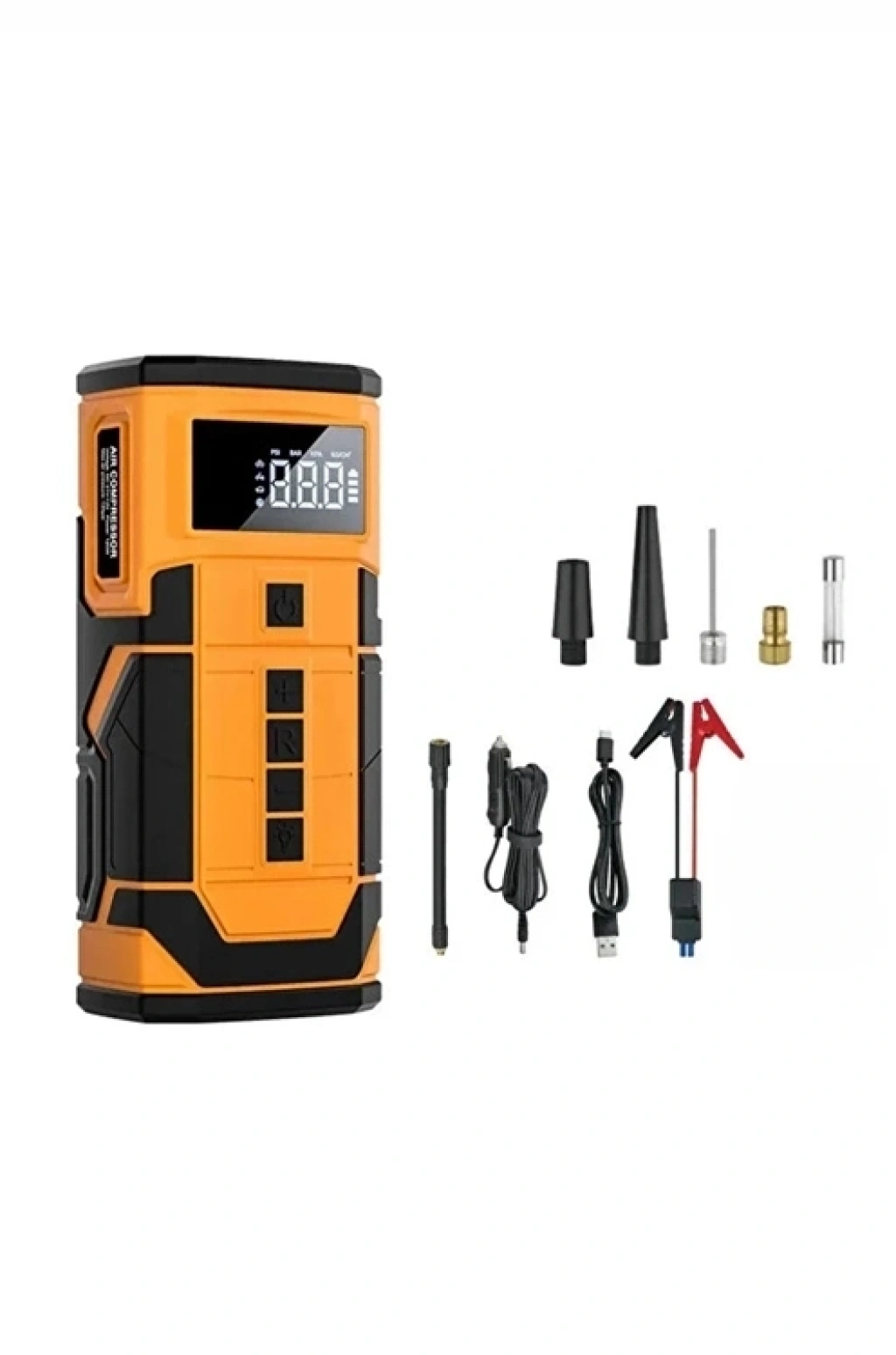 Yolda kalmaya son! Bu kompakt cihaz; Akü Takviye (Jump Starter),Hava Kompresörü, Powerbank ve LED Fener özelliklerini tek bir gövdede topluyor. Hem otomobilinizde hem de kamp ve seyahatlerinizde en büyük yardımcınız olacak.