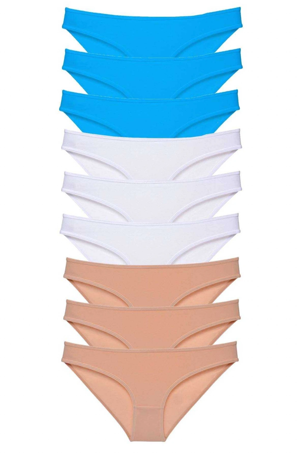 9 adet Süper Eko Set Likralı Kadın Slip Külot Ten Beyaz Mavi