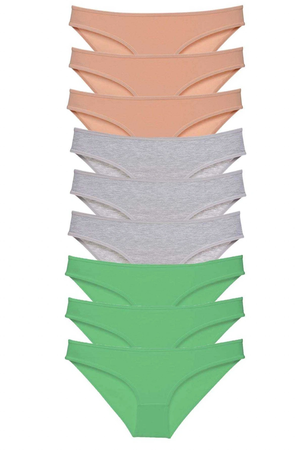 9 adet Süper Eko Set Likralı Kadın Slip Külot Ten Gri Yeşil