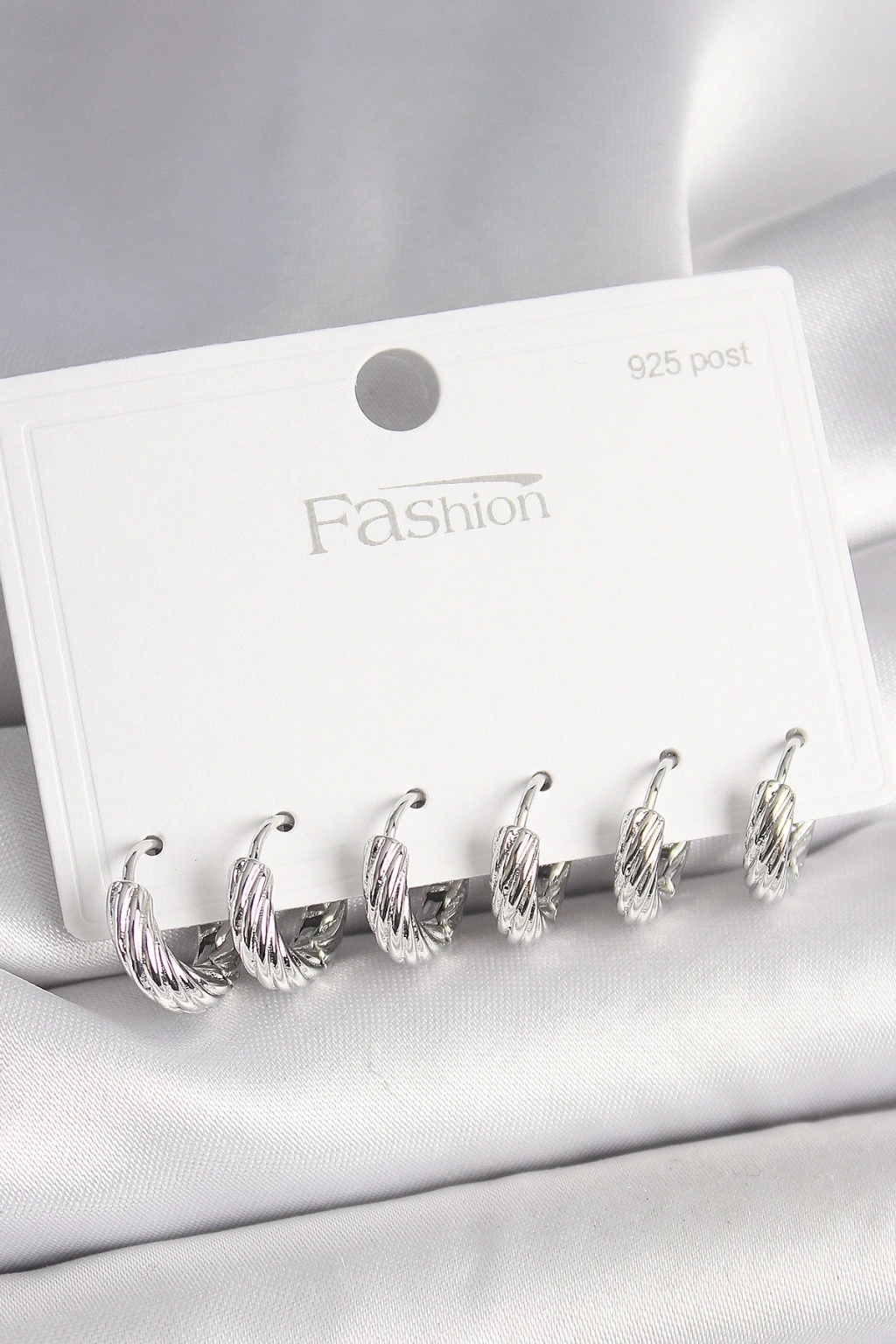 925 Ayar Gümüş Çivi Pirinç Gümüş Renk İşlemeli Halka Model Kadın Küpe Seti - TJ-BKP10410