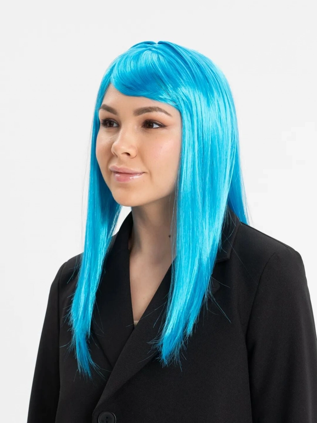 Açık Mavi Renk Uzun Düz Parti Peruğu