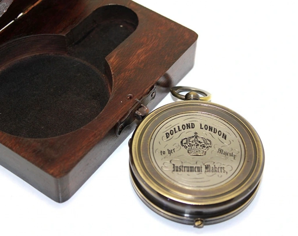 • Ahşap Kutulu Üzeri Desenli Pirinç Pusula