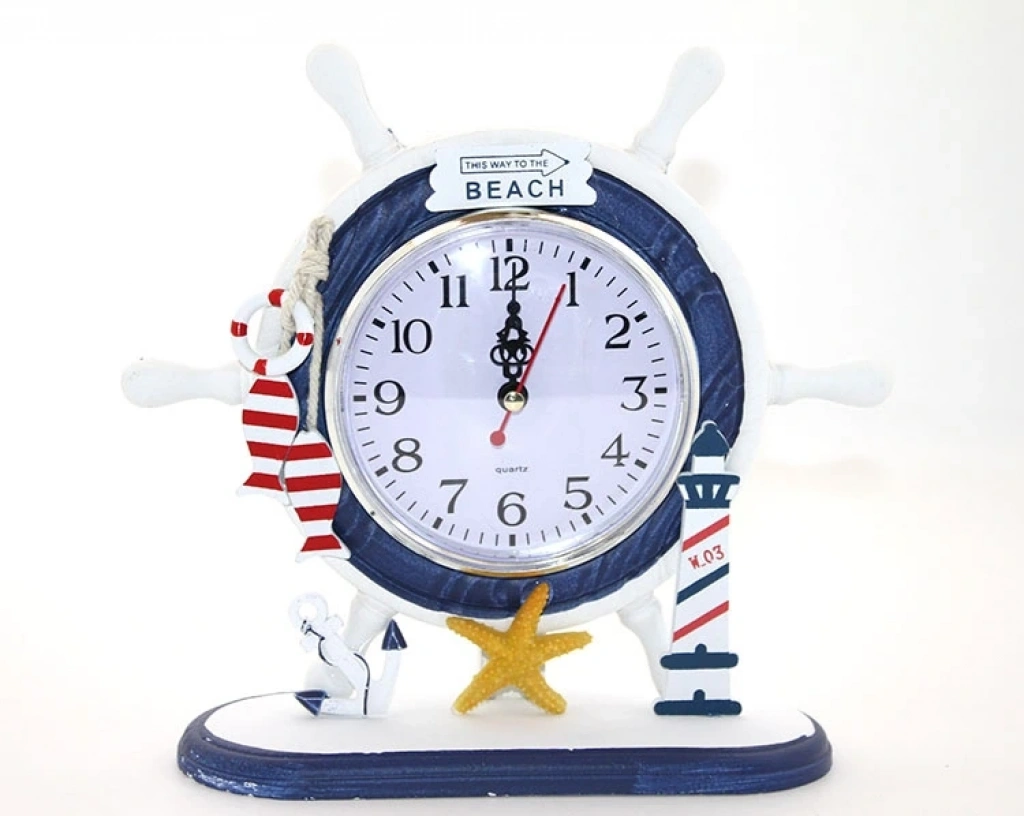 AHŞAP MARİN DÜMENLİ SAAT MODEL 3Ürün ÖzellikleriAhşap Marin Dümenli Saat Model 3, deniz temalı dekorasyonunuzu tamamlayacak şık ve fonksiyonel bir üründür. Gemi dümeni şeklindeki tasarımı, marin havasını evinize taşır. Saat, kaliteli işçiliği ve şık detayları ile hem dekoratif hem de kullanışlı bir üründür. 22x20 cm boyutunda olup, denizci temalı dekorasyonlar ve sahil tarzı odalar için mükemmel bir seçimdir.Paket İçeriği1 Adet Ahşap Marin Dümenli Saat Model 3