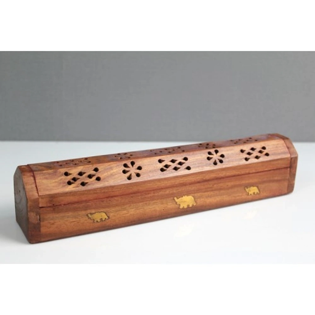 AHŞAP MAUN TABUT TÜTSÜLÜK MODEL 1Ahşap maun tabut tütsülük, mistik tasarımı ve doğal dokusuyla meditasyon seanslarınızdan günlük dinlenme anlarınıza kadar her ortama huzurlu bir derinlik katar. Geleneksel tabut formu, tütsü çubuğunu tamamen içine alarak güvenli bir yanma sağlarken, özel tasarlanmış delikleri sayesinde dumanın ortama dengeli ve estetik bir şekilde yayılmasına yardımcı olur. Maun renginin sıcaklığıyla birleşen bu tütsülük, hem ruhunuzu dinlendiren bir araç hem de masanızda dikkat çeken dekoratif bir objedir.Öne Çıkan ÖzelliklerMistik ve Şık Tasarım: "Tabut" formuyla klasik tütsülüklerden ayrılan model, dekorasyonunuza gizemli ve zarif bir hava katar.Temiz ve Hijyenik Kullanım: Kapalı yapısı sayesinde tütsü külleri tamamen hazne içinde birikir; çevreye kül dağılmasını önleyerek pratik bir kullanım sunar.Dengeli Duman Dağılımı: Kapak üzerindeki stratejik noktalar, dumanın odaya eşit ve yavaşça yayılmasını sağlayarak aromaterapi etkisini maksimize eder.Kaliteli Ahşap İşçilik: Maun tonlarındaki kaliteli ahşap materyal, ısıya karşı dayanıklıdır ve uzun süreli kullanımlarda formunu korur.İdeal Boyutlar: 30x6 cm ölçüleriyle tüm standart çubuk tütsülere uyum sağlar ve her türlü düz zeminde sabit durur.Güvenli Yanma: Tütsü çubuğunun kapalı bir alanda yanması, açık alev veya köz kaynaklı riskleri minimize ederek güvenli bir deneyim sağlar.Kullanım AlanlarıMeditasyon ve Yoga Alanları: Odaklanmayı artıran, dingin ve huzurlu bir atmosfer yaratmak için.Ev ve Ofis Dekorasyonu: Kitaplıklar, çalışma masaları veya sehpa üzerlerinde otantik bir dekoratif parça olarak.Hediye Alternatifi: Spiritüel konularla ilgilenen veya evine farklı bir hava katmak isteyen dostlarınız için özgün bir tercih.Teknik Özellikler TablosuÖzellikDetayÜrün TipiAhşap Çubuk TütsülükTasarımKapaklı Tabut Formu (Model 1)MalzemeKaliteli Ahşap (Maun Rengi Kaplama)Boyut30 cm x 6 cmKullanım AmacıAroma Dağıtımı ve Kül ToplamaFonksiyonHijyenik, Kapalı Devre Tütsü YakmaPaket İçeriği1 Adet Ahşap Maun Tabut Tütsülük