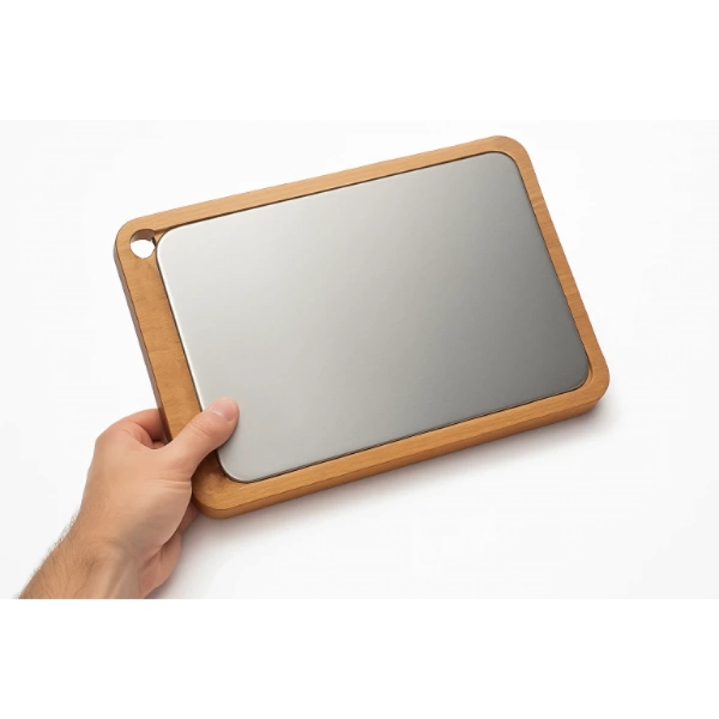 AHŞAP PASLANMAZ ÇELİK KESİM VE SUNUM TAHTASIÜrün ÖzellikleriAhşap paslanmaz çelik kesim ve sunum tahtası, hem şık görünümü hem de işlevselliğiyle mutfakların vazgeçilmez ürünlerinden biridir. Paslanmaz çelik pano 28.5 x 19.5 cm boyutundadır ve kolayca çıkarılabilir özelliği sayesinde pratik bir kullanım sunar. Ahşap tahta kısmı ise 31 x 22 cm ölçülerindedir. Hem sunum hem de kesim amacıyla kullanılabilen bu ürün, dayanıklı yapısıyla uzun ömürlü bir kullanım imkânı sağlarken sofralara da zarif bir dokunuş katar.Paket İçeriği1 adet Ahşap Paslanmaz Çelik Kesim Ve Sunum Tahtası