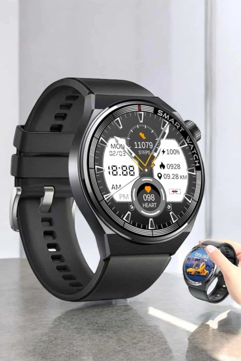 GT3 Max Akıllı Saat, teknoloji ve estetiği bir araya getiriyor. Gelen bildirimler ve çağrılar için titreşimli hatırlatıcılar sunarak iletişimi daha pratik hale getirir. Nabız sensörü ile sürekli kalp atış hızınızı izlerken uyku takibi özelliği daha kaliteli bir uyku düzeni oluşturmanıza yardımcı olur. Adımsayar, günlük egzersizlerinizde ilerlemenizi ölçerek spor hedeflerinizi planlamanızı sağlar. Şık siyah kasa tasarımı, her ortamda zarif bir aksesuar olarak öne çıkar. 300-400 mAh batarya kapasitesiyle uzun saatler boyunca kesintisiz kullanım sunar.
