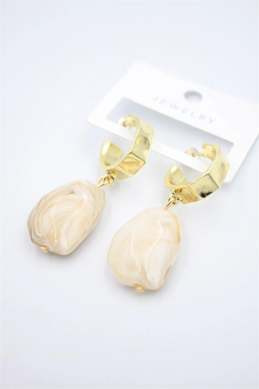 Akrilik Taşlı Küpe - Krem