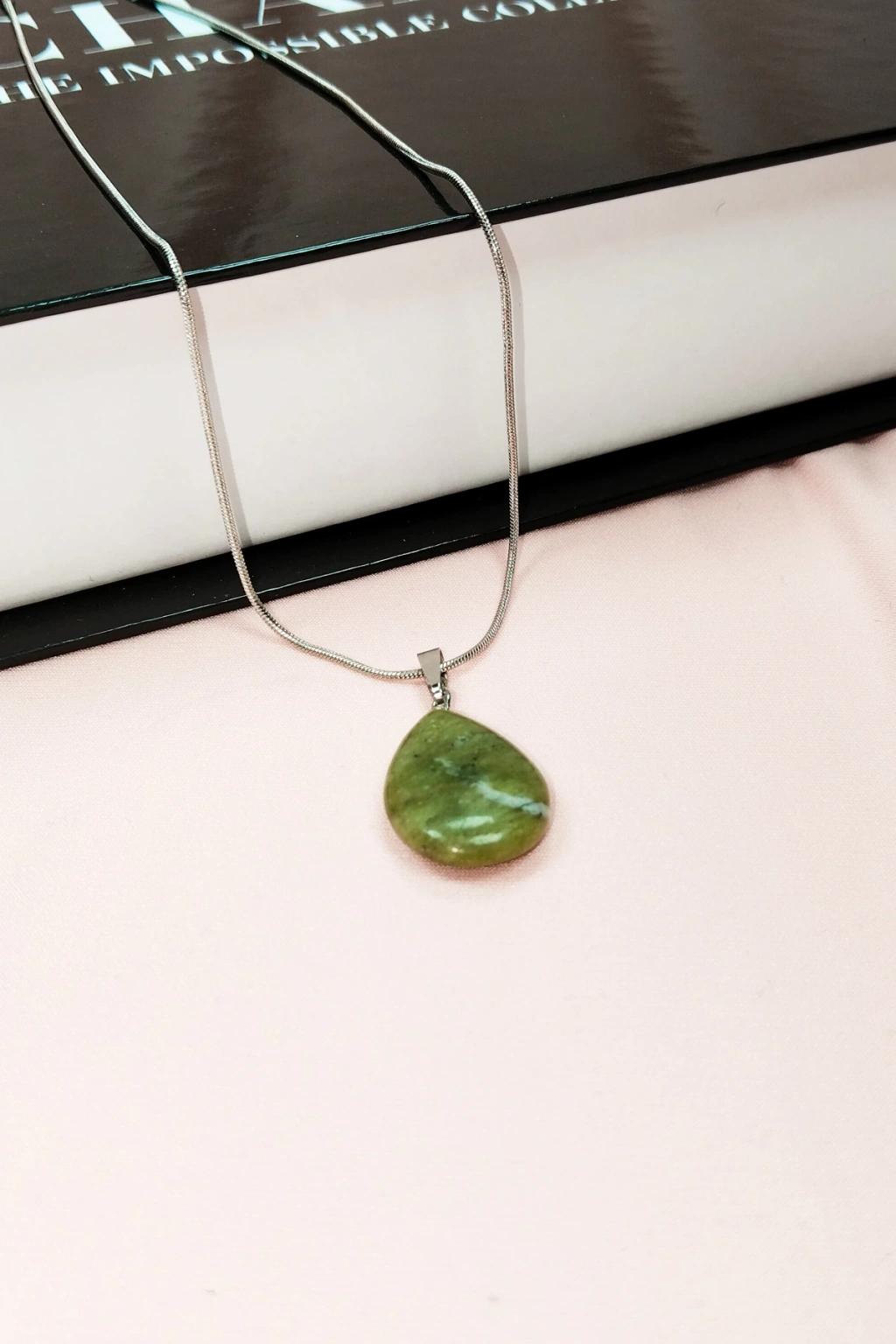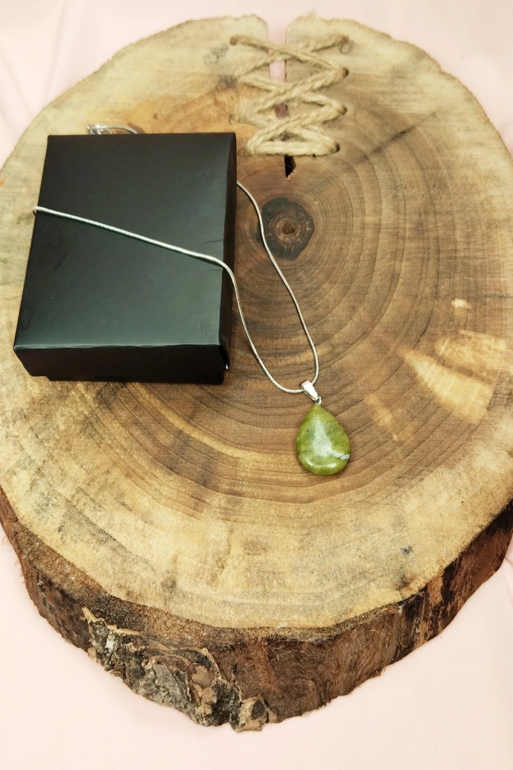 Yeşim Doğal Taşı Zincirli El Yapımı Tasarımlı Kolye Uç: 3,5 cm Zincir: 20 cm Kutulu