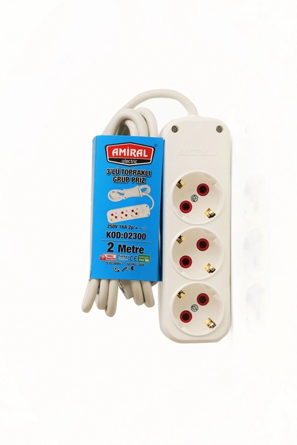 Amiral 3' lü Topraklı 2 Metre Kablolu Grup Priz