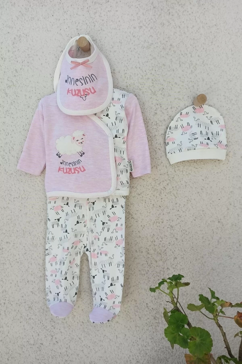 Annesinin Kuzusu Şapkalı Eldivenli 5'li Kız Zıbın Seti 0-3 Ay