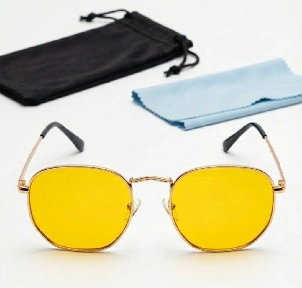 Sarı renkli, özel kaplamalı lens ile üretilen sürücü gözlüğü, ışık parlamalarını azaltan, Avrupa ve