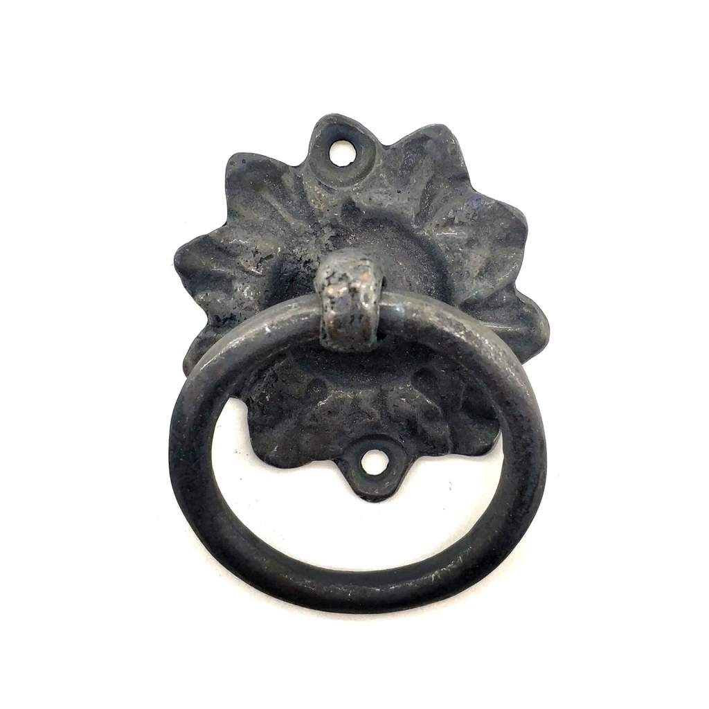 • Antika Tarz Dekoratif Pirinç Çiçek Mobilya Kulbu, Kapı Kilit Halkası - 50mm, Oksit