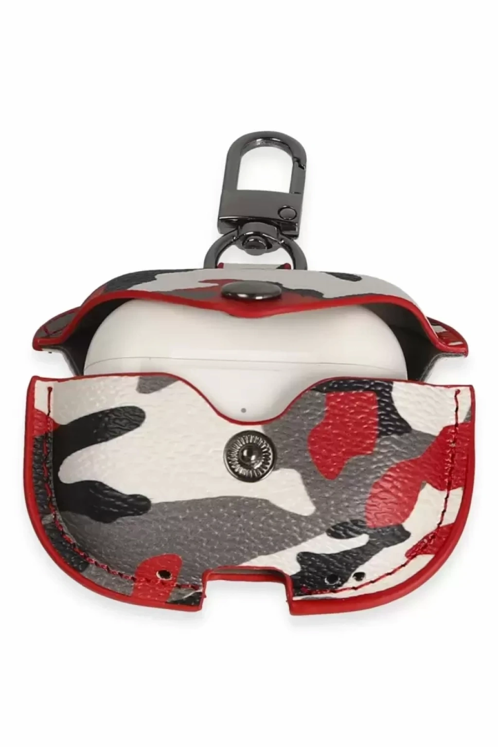 Apple Airpods 3 (3.nesil) Çanta Kamuflaj Deri Kılıf - Kırmızı