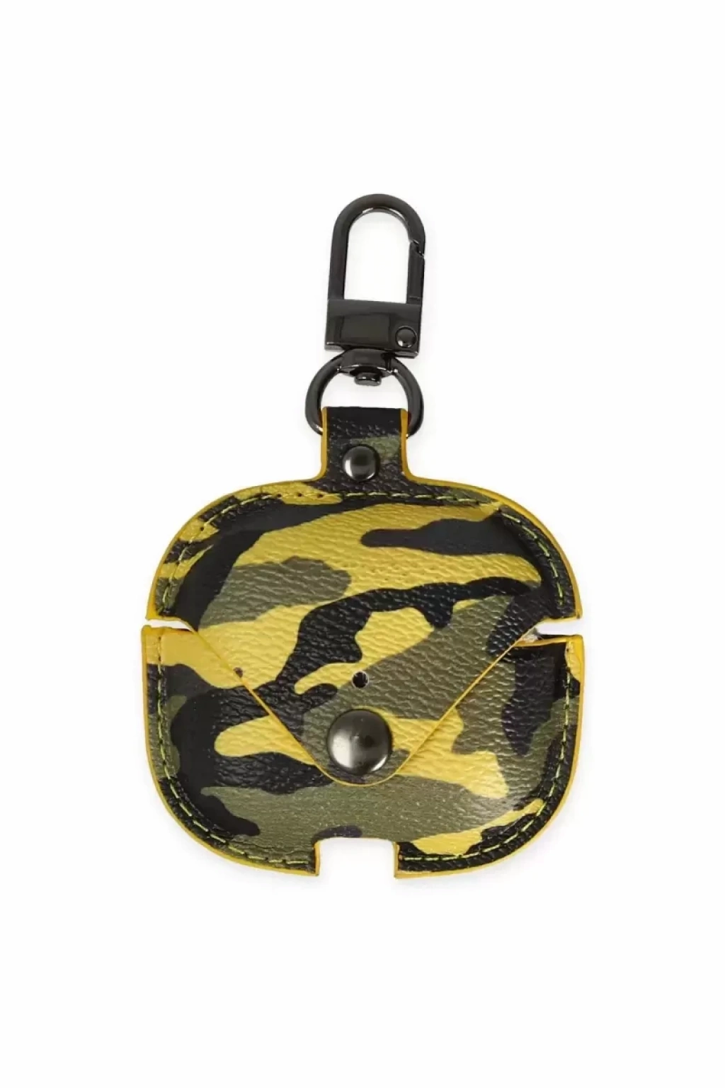 Apple Airpods Pro 2 (2.nesil) Çanta Kamuflaj Deri Kılıf - Sarı