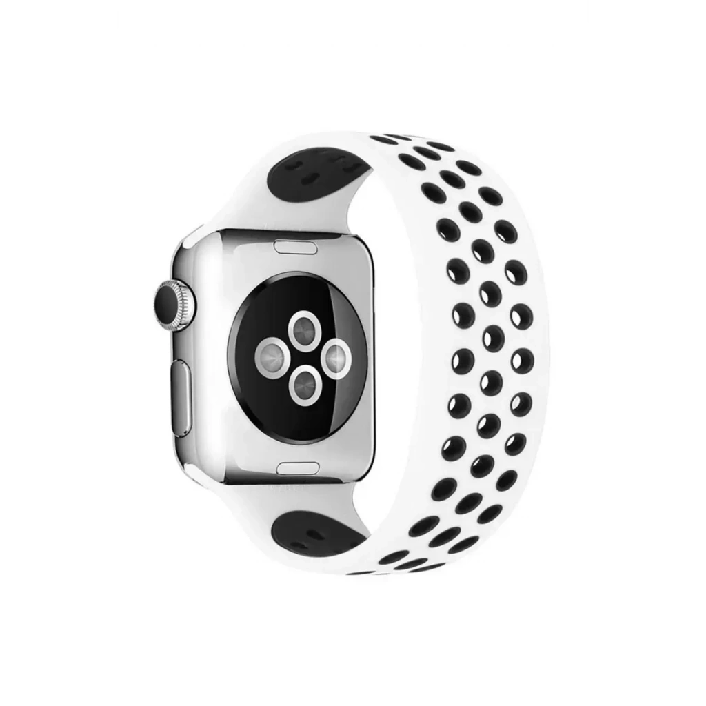 Apple Watch 38mm Ayarlı Delikli Silikon Kordon - Beyaz-Siyah