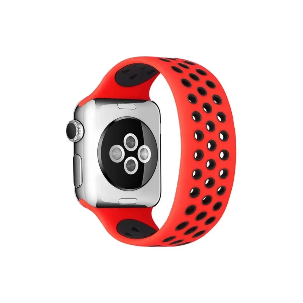 Apple Watch 38mm Ayarlı Delikli Silikon Kordon - Kırmızı-Siyah