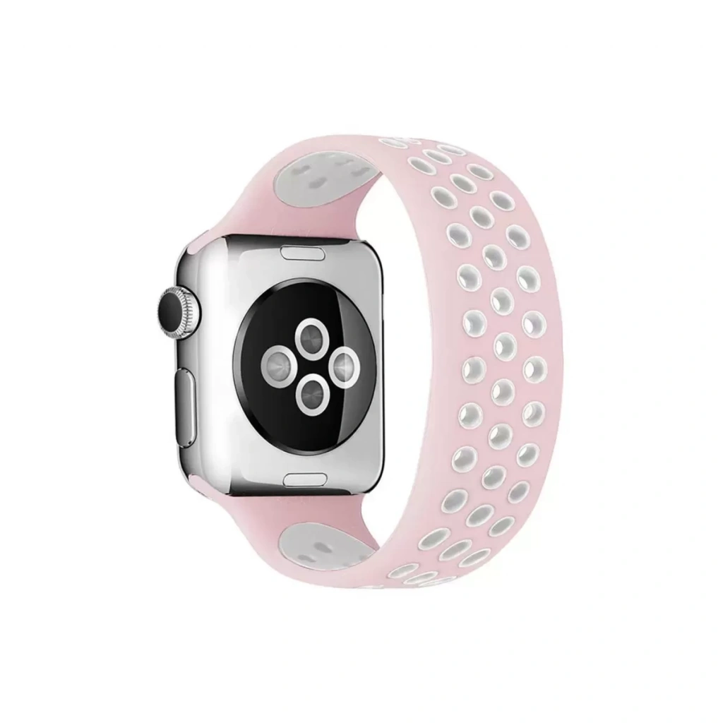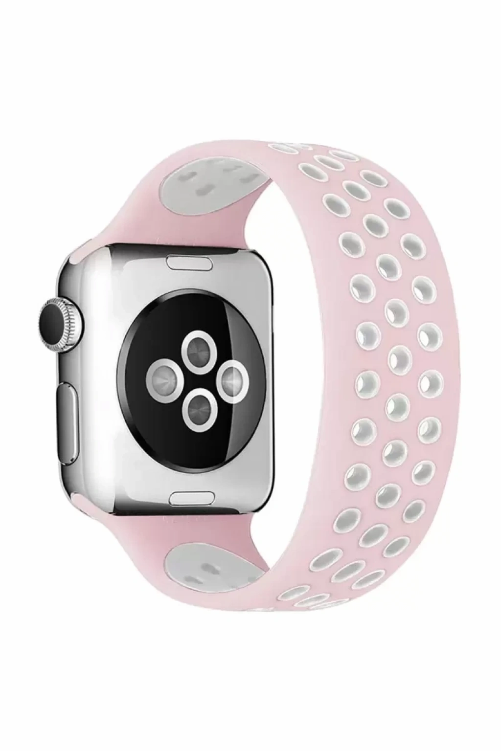 Apple Watch 38mm Ayarlı Delikli Silikon Kordon - Pembe-Beyaz