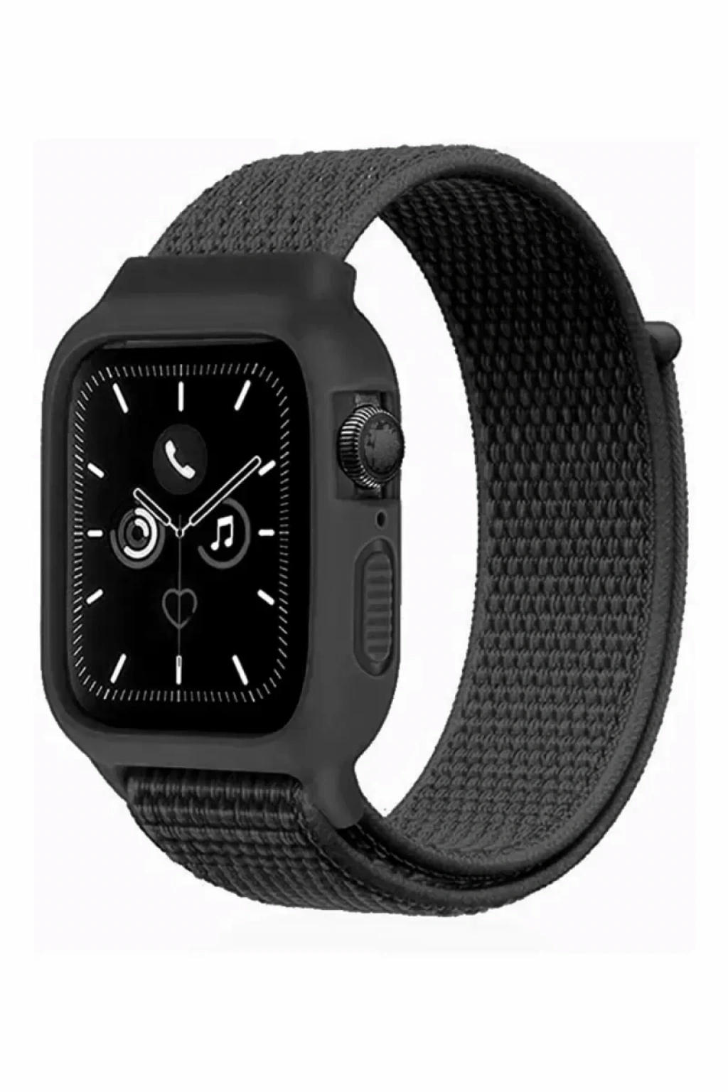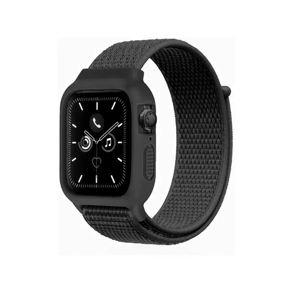 Apple Watch 38mm Hasırlı Cırtcırtlı Kasalı Kordon - Siyah